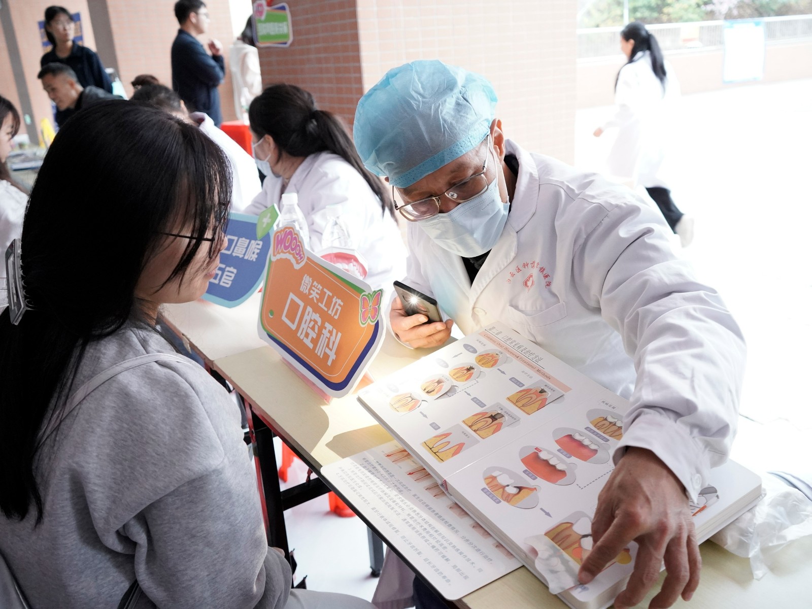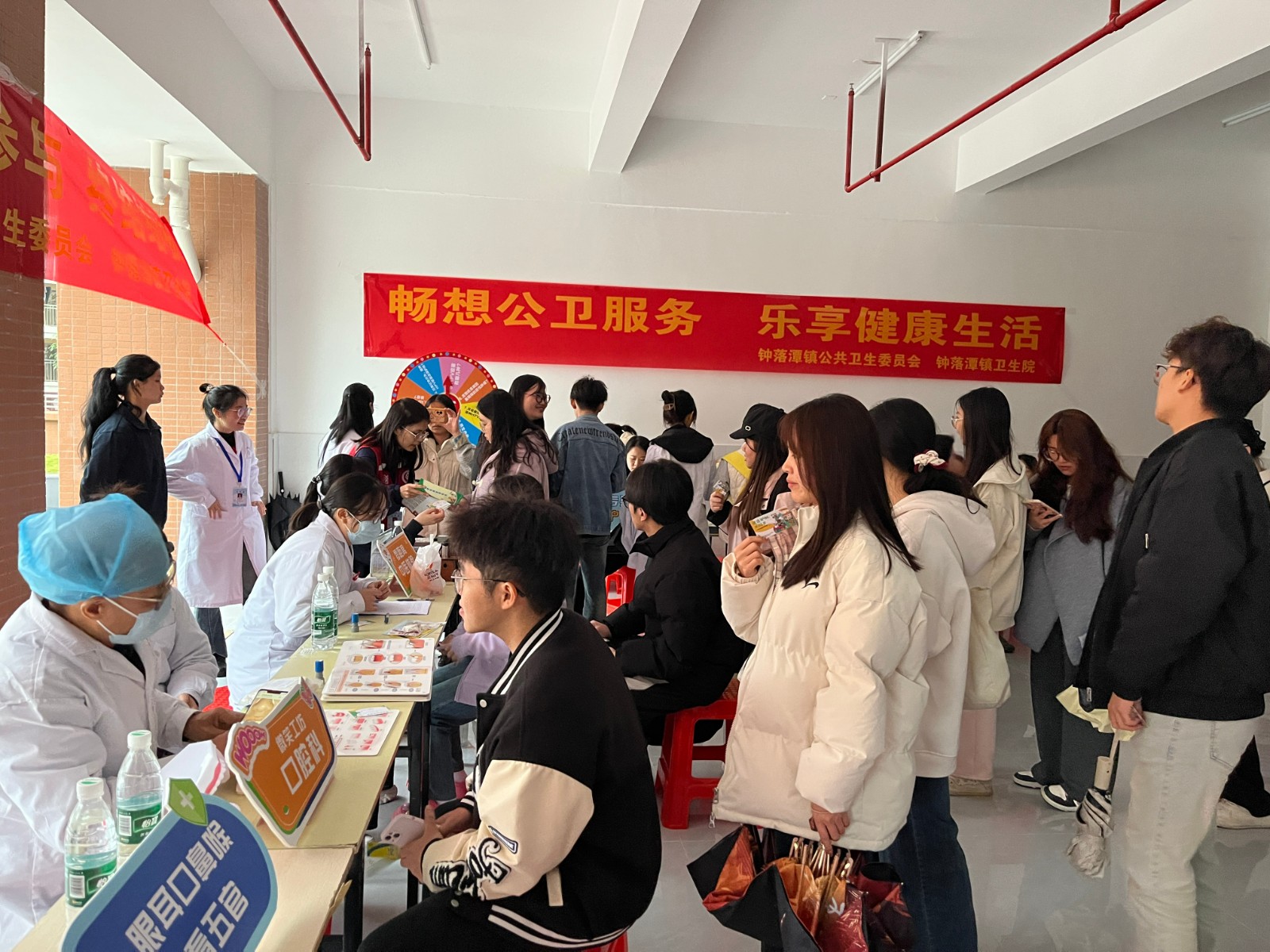 讲座结束后,在四号教学楼大堂开启了热闹非凡的游园活动。活动现场设置了公卫科(HPV)、中医科、口腔科、宣传科(互联网医院)、五官科等多个摊位。公卫科(HPV)摊位前,同学们积极了解 HPV 相关知识,参与互动集赞;中医科摊位上,专业的中医为同学们提供健康咨询,展示中医的神奇魅力;口腔科、五官科的医生们也为同学们带来了丰富的口腔和五官保健知识。