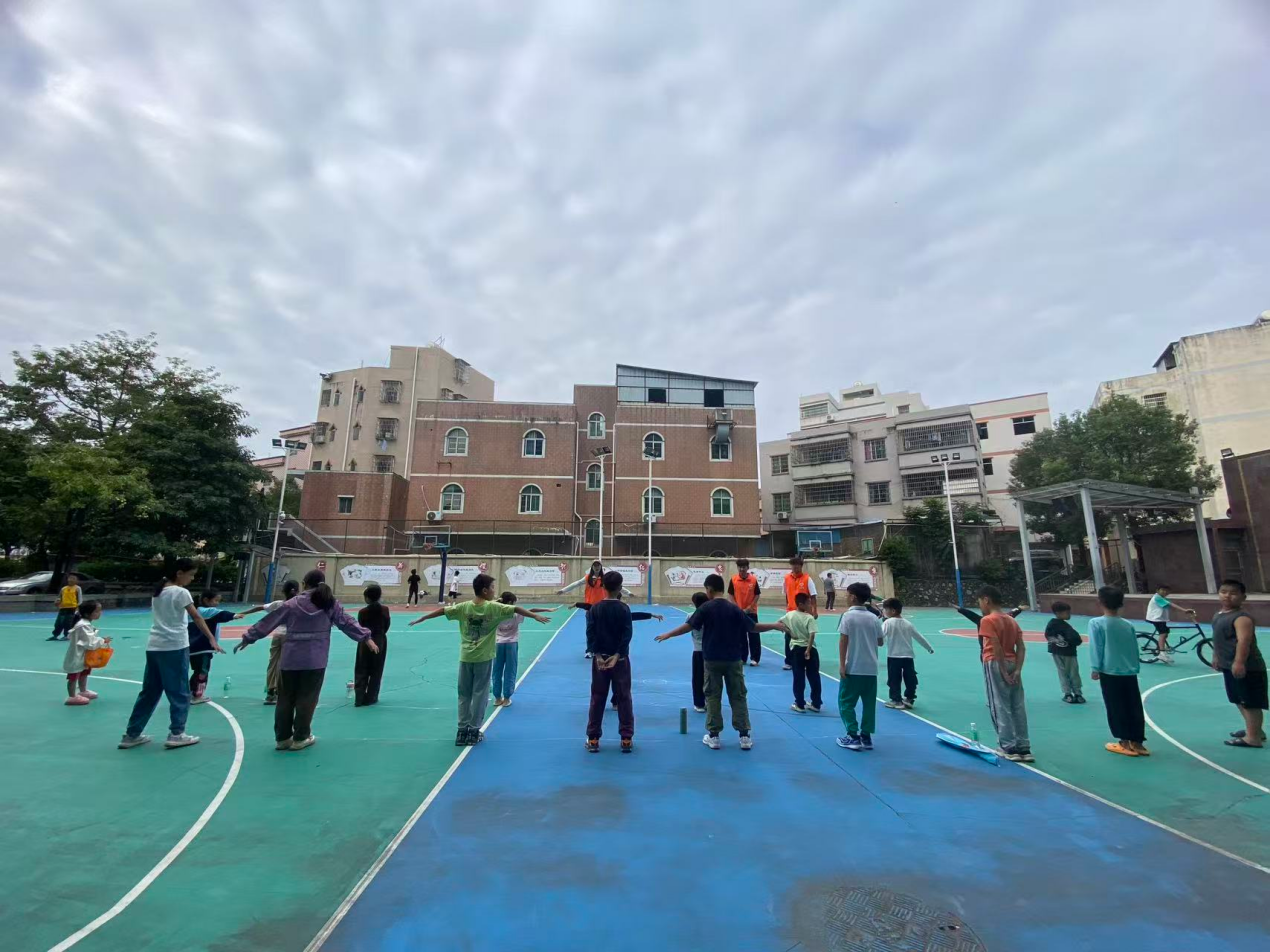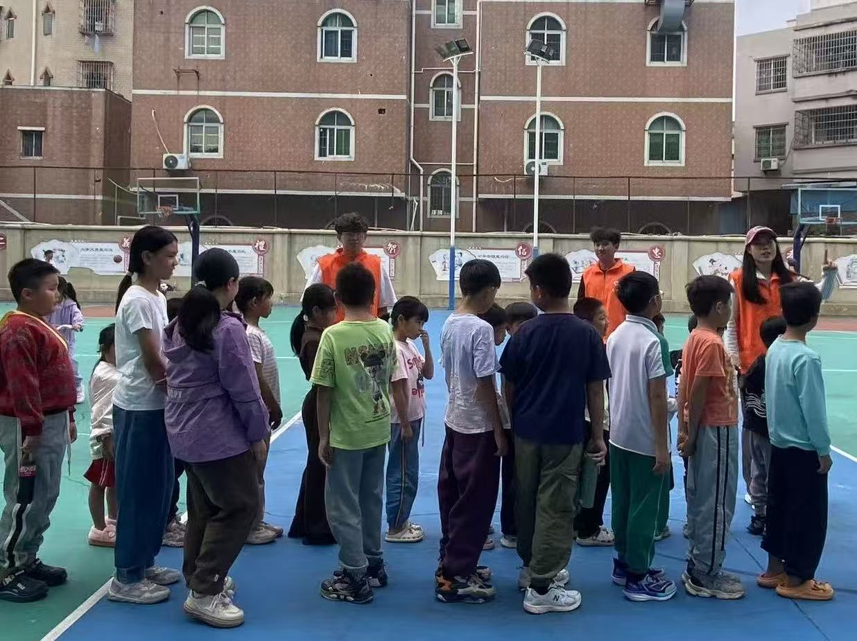 课程伊始,志愿者们提前抵达操场,有条不紊地准备篮球、划分活动区域,以饱满的状态迎接孩子们的到来。当一张张充满期待的小脸蛋出现在操场时,课堂的氛围瞬间被点燃。热身环节,志愿者们带领孩子们做着拉伸、折返跑等动作,既帮助孩子们活动开身体,避免运动受伤,也让他们快速进入运动状态。孩子们跟着指令蹦蹦跳跳,眼神里满是兴奋,热情愈发高涨。