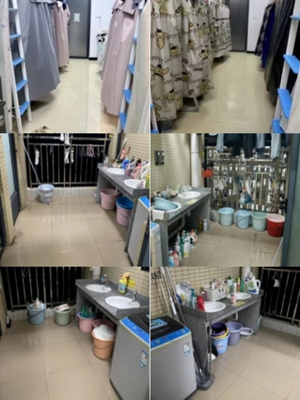 部分宿舍堪比“垃圾囤积站”,外卖盒堆成小山,零食袋藏在角落,地面头发堆积;个别宿舍顶风违规,私拉电线到床上给手机充电,插座旁堆放被子、纸巾等可燃物;均被志愿者的“火眼金睛”一一发现。