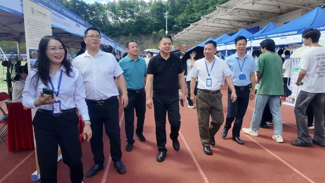 6月11日上午,广州市白云区人力资源和社会保障局二级调研员余炳堂率队,就业促进科科长余中旺、就业中心蓝成,钟落潭党群服务中心主任冯勇、科长刘金葵,花都区民营医疗协会前会长樊孝旭、秘书长王艳艳等一行莅临招聘会指导。校方高度重视,书记王书汉、副校长刘金文、就业与校企合作办公室主任付立阳、校企合作主管吴琼英及各职能部门负责人亲临现场,与政协单位成员协同联动。