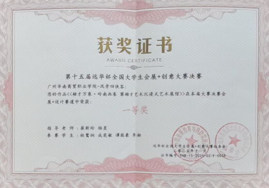 近日,第十五届“远华杯”全国大学生会展+创意大赛在广东工程职业技术学院(清远校区)举行。我校经济管理学院会展策划与管理专业学生成奕敏、林鸶纳、谭敬豪组成的参赛团队,在指导教师崔新玲的带领下,凭借扎实的专业能力与富有创意的方案设计,从全国众多高校队伍中脱颖而出,荣获大赛一等奖。
