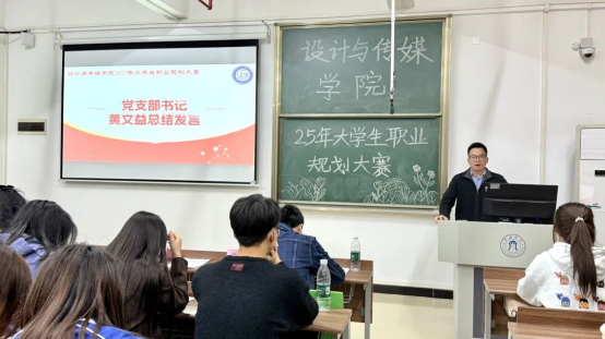 为进一步加强我院教育和就业指导,增强大学生生涯规划意识,指导学生提前做好就业准备,促进毕业生高质量充分就业,11月18日晚,设计与传媒学院2025年大学生职业规划大赛决赛在S2-502教室顺利举行。